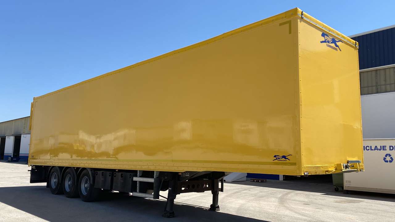 En nuestra exposición de semirremolques de ocasión disponemos de este tipo de furgones que se pueden transformar al gusto del cliente. En este caso, se han instalado unas rampas traseras con accionamiento hidráulico.